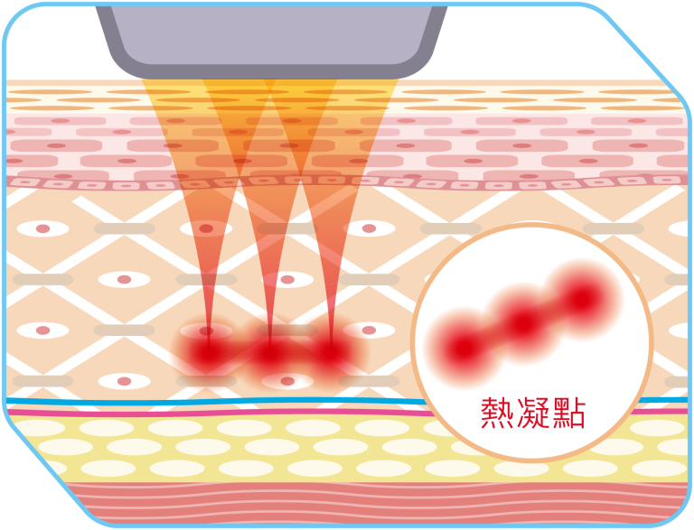 發射的熱凝點,由傳統「單點狀」升級至「3點線狀」,有效加大治療範圍,同時積聚更多熱能,達致更佳的膠原收緊及重組,帶來長達1至3年的提拉效果(因人而異)。